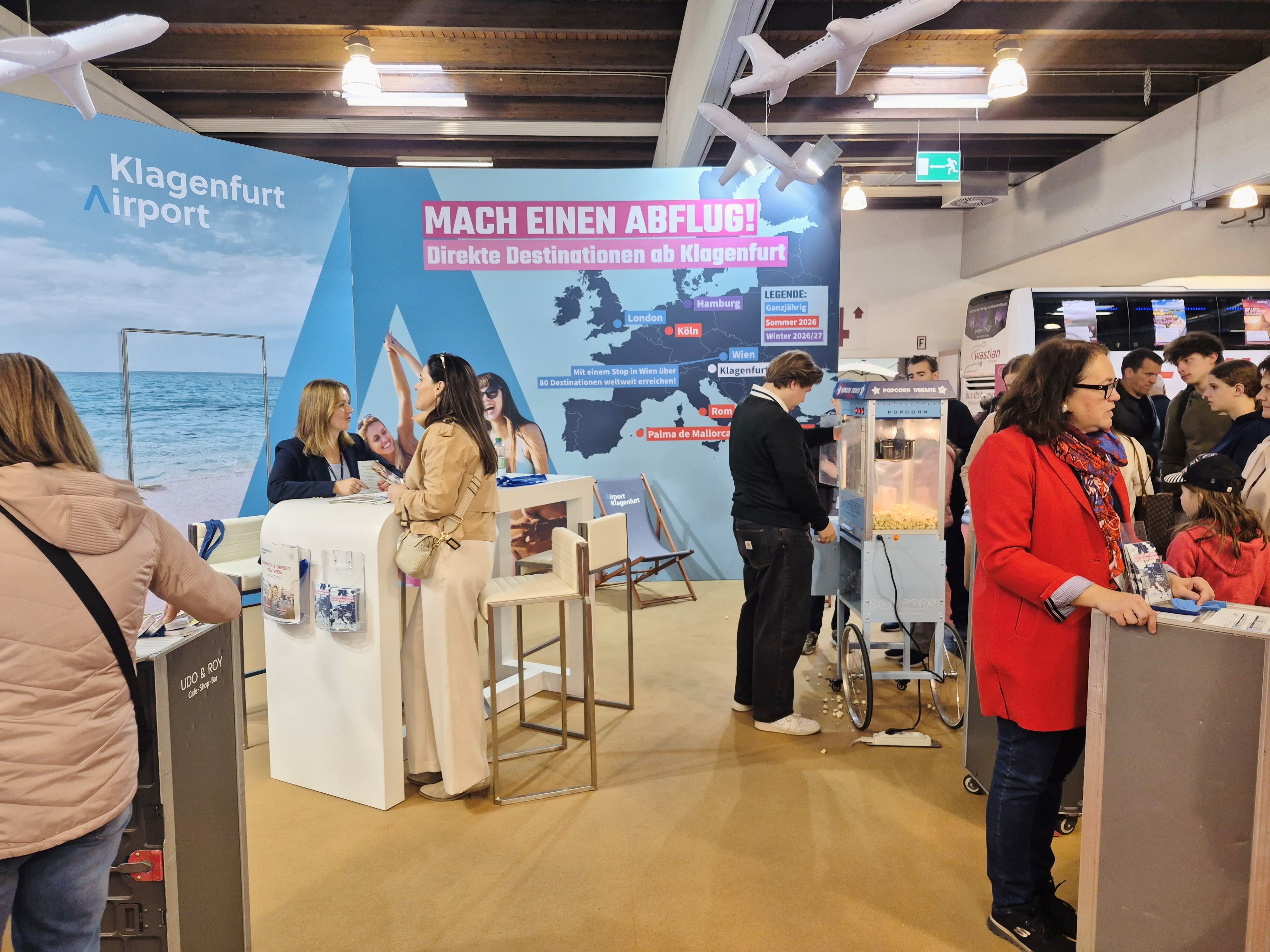 Im Rahmen der gestern zu Ende gegangenen Freizeitmesse informierte der Flughafen Klagenfurt drei Tage lang über sein erweitertes Flugangebot für die Sommersaison 2026. Zahlreiche Besucher:innen nutzten die Gelegenheit, sich vor Ort über neue Destinationen wie die im Juni startenden Direktflüge nach Rom, bewährte Verbindungen wie die gerade heuer sehr stark nachgefragte Fluganbindung nach Mallorca und individuelle Reisemöglichkeiten zu informieren.