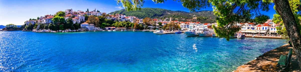 Skiathos ist eine griechische Insel im Nordwesten der Ägäis mit rund 60 km2 und 6.000 Einwohnern. Sie ist eine der weniger bekannten Inseln Griechenlands und gehört dennoch mit ihren über 60 traumhaften Stränden zu den Geheimtipps unter Insidern und Wassersportfreunden. Paradiesische Strände, die griechische Kulinarik und das lebhafte, junge Nachtleben zeichnen Skiathos aus.